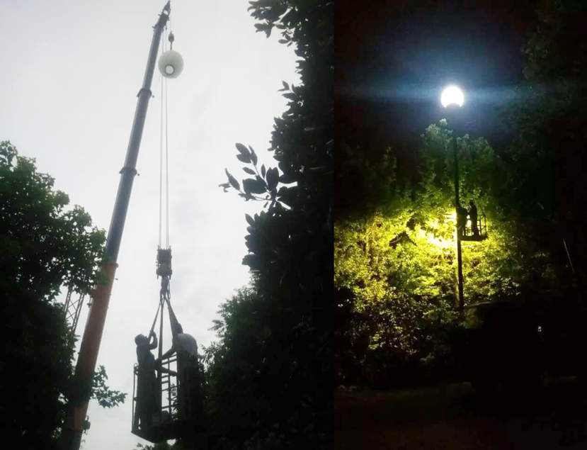 此次改造中所提供的產(chǎn)品為華體精心打造的“珍珠球”燈,該燈燈罩采用乳白色套瓷自潔玻璃制成,內(nèi)置120WLED燈帶燈桿采用升降插接的方式,總高度20米,可根據(jù)周?chē)h(huán)境來(lái)調(diào)整高度。 頂部光源采用特制的大口徑玻璃燈罩,中部采用外型定制的投樹(shù)燈。 另外,燈桿表面處理采用防腐,防水,防紫外線,防褪色的高質(zhì)量氟炭漆。整個(gè)燈型,簡(jiǎn)練,技術(shù)含量高。