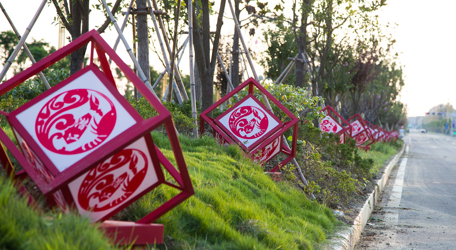 與屏風(fēng)景觀燈配套的草坪燈也安裝在路段的綠化帶處,草坪燈上刻有以小龍蝦為元素的絲印圖案,處處突顯出“小龍蝦”作為潛江一張“活名片”的重要性。