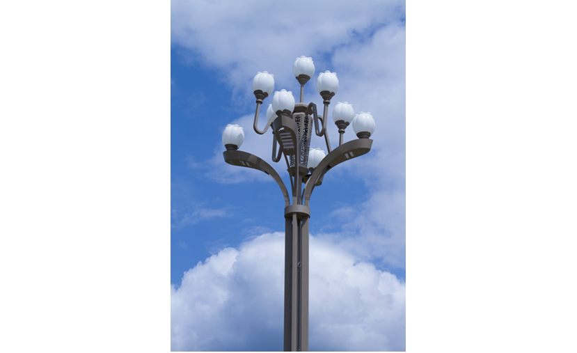 春意盎然景觀燈,寓意國(guó)民經(jīng)濟(jì)就像春天充滿生機(jī),錚錚向榮之意;燈具的設(shè)計(jì)主要通過(guò)花卉造型進(jìn)行抽象設(shè)計(jì)而來(lái),結(jié)合現(xiàn)代工藝轉(zhuǎn)化為集景觀與功能照明為一體的戶外照明工具;燈桿主體、桿體、底座材質(zhì)均為金屬鋼件,表面熱浸鋅后噴塑處理。