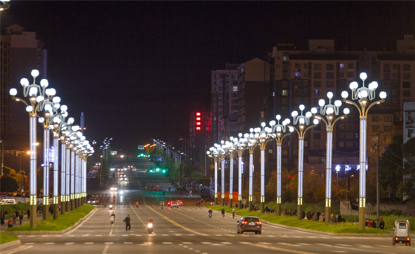 為進(jìn)一步完善城市照明效果,鞏固建設(shè)成果。營(yíng)山縣公共事業(yè)管理局于2016年底至2017年初對(duì)民政局至一環(huán)路南北段以及芙蓉大道一段進(jìn)行了整體的道路照明路燈升級(jí)改造,四川華體照明科技股份有限公司根據(jù)兩條道路的基本情況,結(jié)合當(dāng)?shù)匚幕厣?,分別設(shè)計(jì)并安裝了春意盎然景觀燈和芙蓉中華燈。