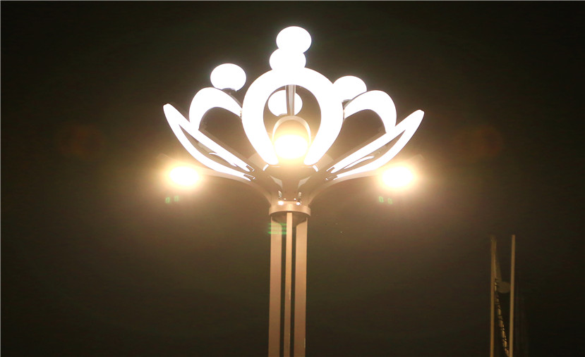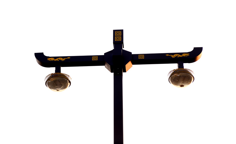 龍是中華文化里的主要圖騰、主要象征, 封建時代,龍是皇權(quán)的象征,皇宮使用器物也以龍為裝飾。設(shè)計者以龍為設(shè)計元素,燈型主體雕刻有兩頭欲破蒼穹的龍,營造了一個創(chuàng)新、包容、獨(dú)立、奮發(fā)向上的精神。燈桿底部的燈箱上刻有牡丹圖案形象生動地展示了龍門石窟的景區(qū)風(fēng)貌,龍燈燈桿裝飾七彩節(jié)日氛圍燈,使龍燈成為一道亮麗的風(fēng)景線,營造出喜慶、熱鬧、祥和的景區(qū)氛圍。