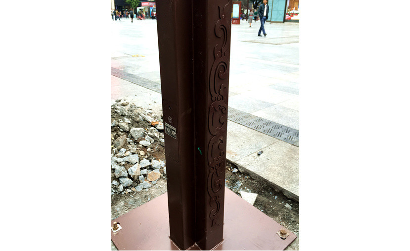 “斗”罩采用鋼化磨砂玻璃制成,搭配鏤空鐵花花紋,景觀性十足;光源采用高壓鈉燈,提高了城市道路照明的質(zhì)量、安全性和環(huán)保性;燈桿外形則充滿幾何感,通透的小矩桿增強了立體效果。