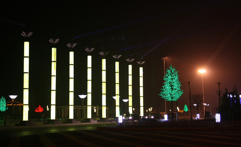 本次景觀照明范圍為新建的四個(gè)中心綠島、人造景觀、綠化景觀、人造雕塑和景石、太白路以及新建道路的功能照明。