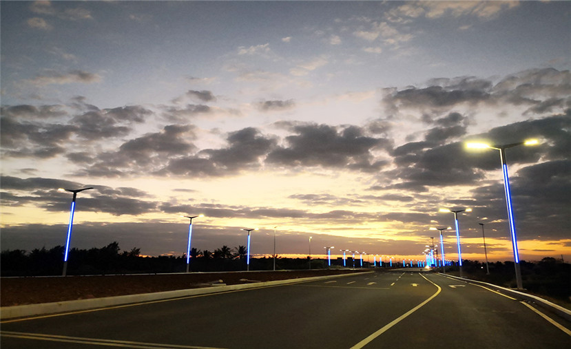 華體科技根據(jù)江東大道“世界眼光、國際標(biāo)準(zhǔn)、海南特色、高點定位”的要求,為業(yè)主方定制設(shè)計了“鋒飛”現(xiàn)代路燈近900柱,安裝在江東大道長達15公里的道路上。