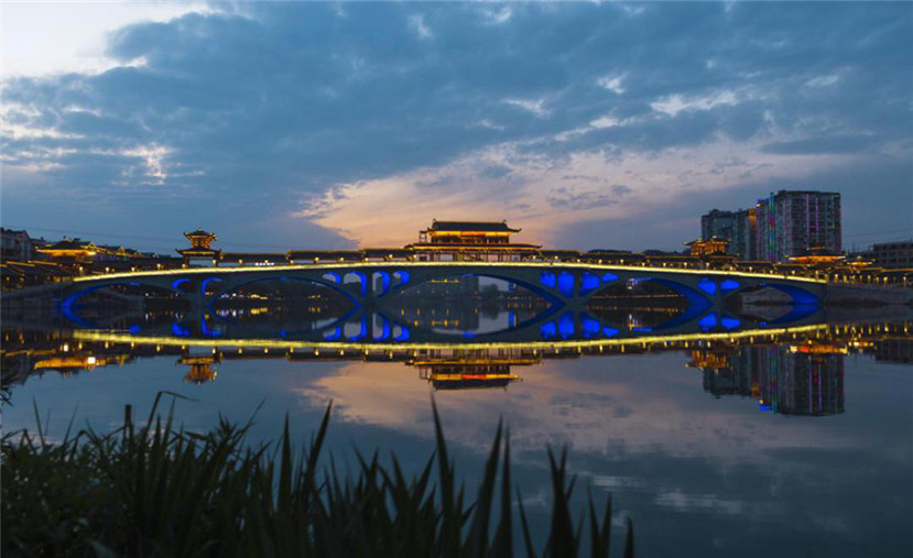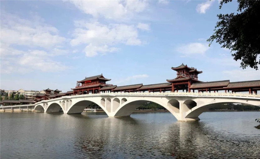 它不僅具備連通南河兩岸、方便市民通行的實用功能,其中植入的大量歷史文化元素,更讓它成為展示新津歷史文化的窗口,這也讓五津廊橋成為新津的文化地標(biāo)。
