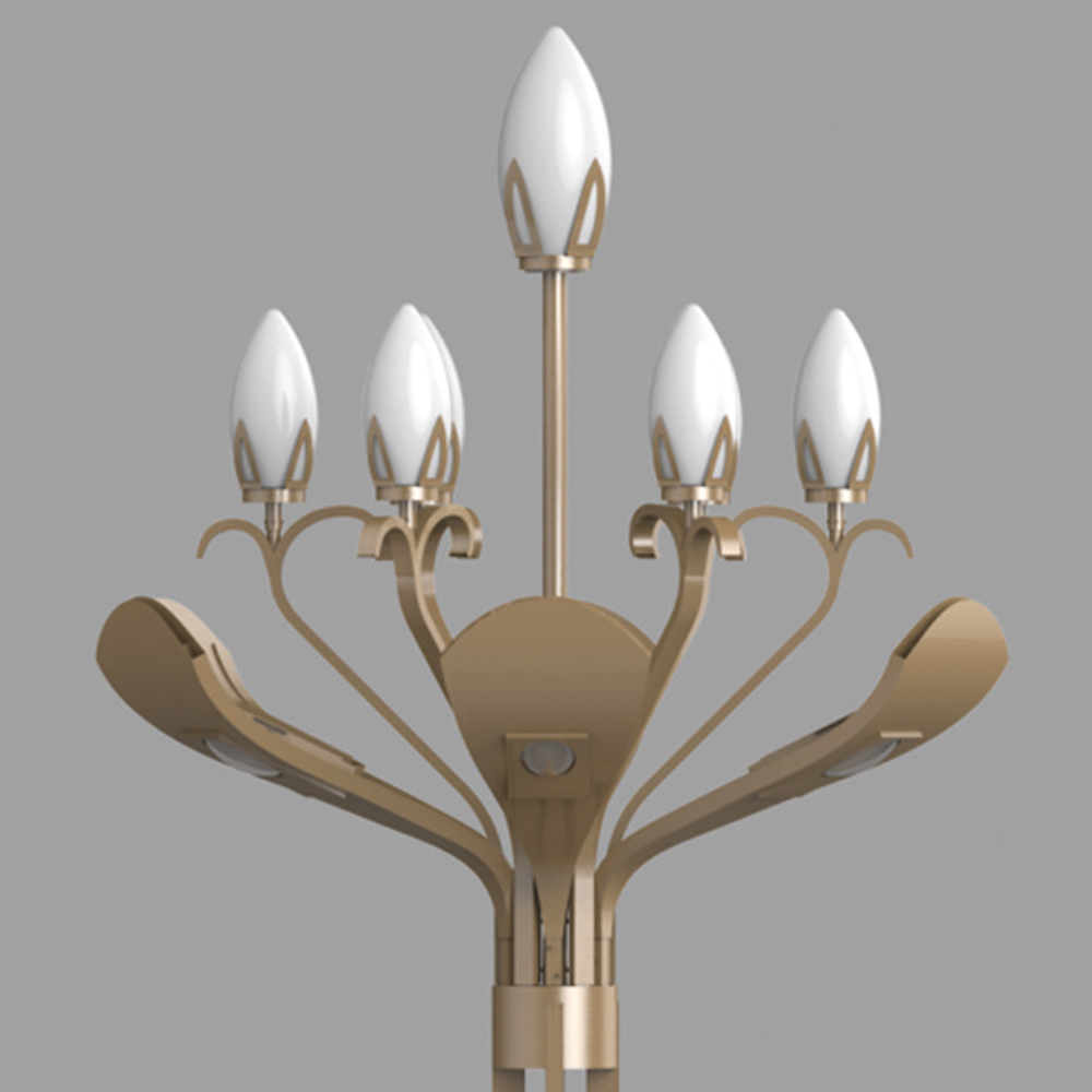 燈型主體以含笑花的元素進(jìn)行造型,燈體底座以抽象的蓮花形態(tài)相結(jié)合,是將地域佛文化在燈具上加載運(yùn)用的體現(xiàn),強(qiáng)化了兩種“佛性”文化,濃縮了地域特色;