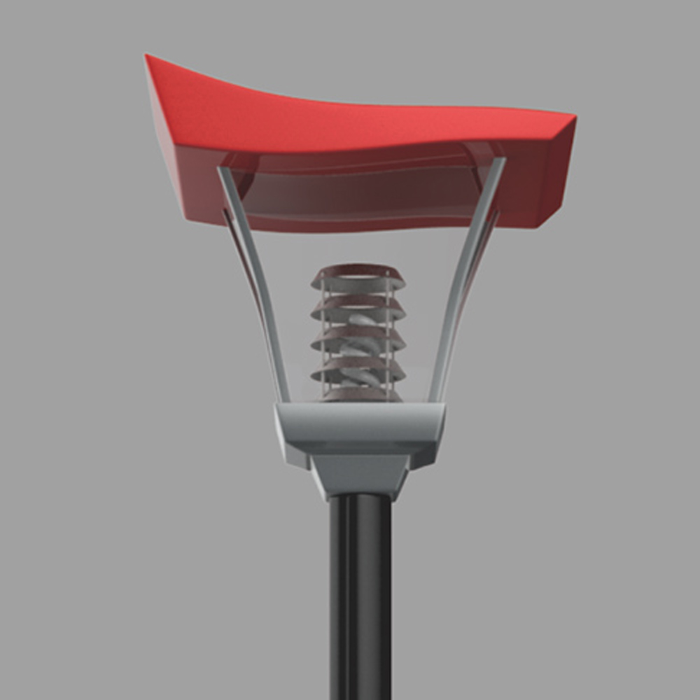 燈頭部分似一面迎風(fēng)飄揚的紅旗,帶來一種靈動活潑的歡樂感,也象征著向上不屈的革命精神。嚴肅且活潑,動靜皆宜。